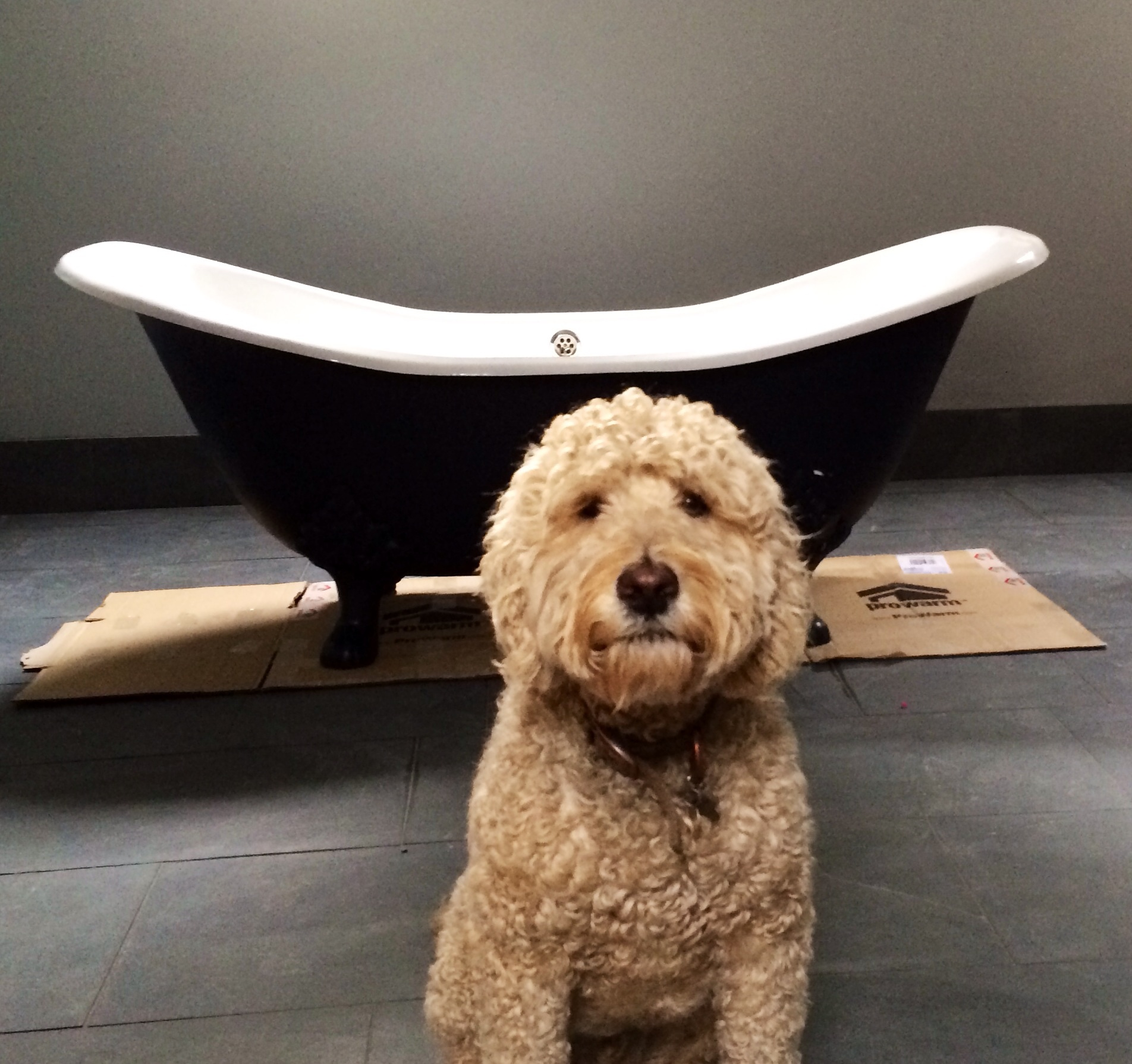The bathroom was one of the worst rooms in the house when we bought it. It was tiny, the shower leaked everywhere, it was a horrid yellow, with an old broken mirror and tiles falling off the wall. Next to it was a gigantic bedroom with a weird sink in the corner with one of those old magnetic soap holders. So we decided to claim some of the bedroom space, as well as knocking out an old water closet to triple the size of the bathroom. We designed it ourselves with the focus around a roll top bath, while Dermot wanted a real drenching shower. I love it. Dougal thinks we’ve just made him an elaborate drinks station as he always wants to drink from the bath taps. So I think that’s the official seal of approval.