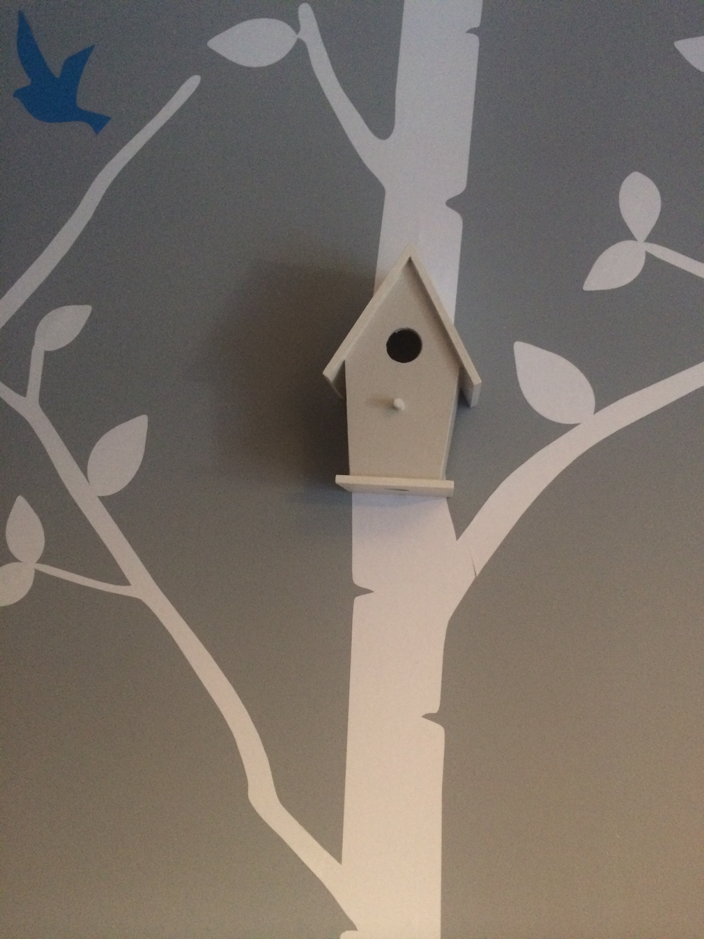 I was going to go for fairy lights to give some light to the room at night but then spotted this bird house wall light on Etsy which is stunning. Mum made us some bunting to match (which Magnus has managed to aim a projectile wee at already at less than two weeks old!) and the cot turns into a day bed so should be useful for years to come hopefully.